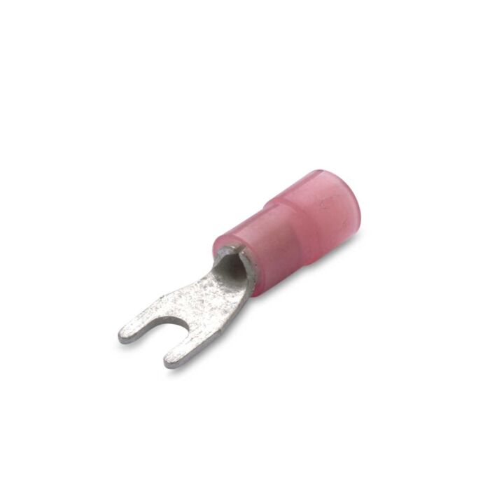 Końcówki kablowe izolowane widełkowe, 1.5/5, nylon 105°C, czerwone, zakres 0.25-1.5 mm², opakowanie 100 sztuk