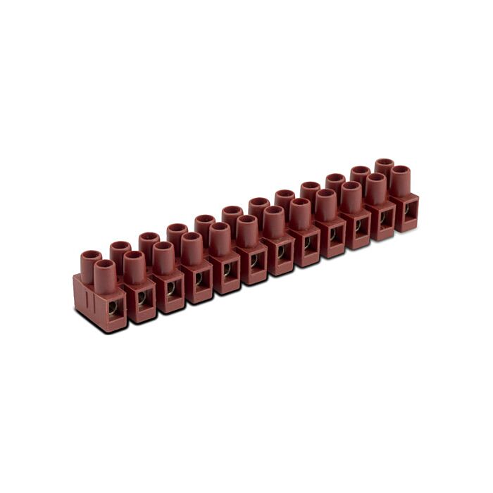 Listwa zaciskowa wzmocniona śrubowa, 12P, 4 mm², z ochroną przewodu, poliamid+25% włókna szklanego, kolor brązowy, opakowanie 50 sztuk