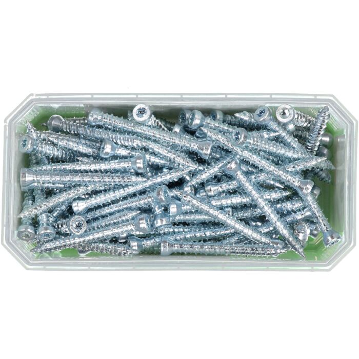 Wkręt jest wykonywany ze specjalnie utwardzanej stali. Montuje się go bezpośrednio w otworze, bez użycia kołków rozporowych. Wkręt na całej długości posiada tzw. gwint “hi-low” ułatwiający instalację. Specjalnie utwardzana stal jest ocynkowana elektrolitycznie. Wkręt wyposażony jest w gniazdo TX 30.