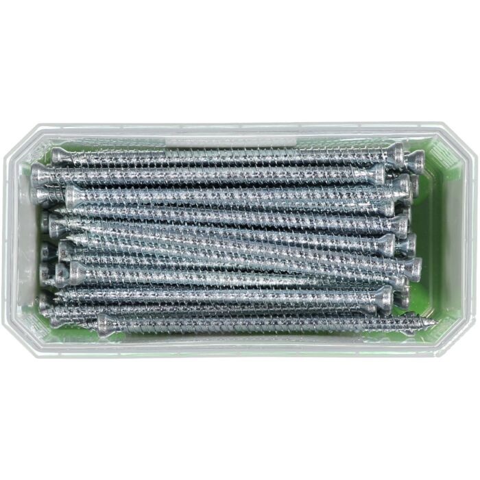 Wkręt jest wykonywany ze specjalnie utwardzanej stali. Montuje się go bezpośrednio w otworze, bez użycia kołków rozporowych. Wkręt na całej długości posiada tzw. gwint “hi-low” ułatwiający instalację. Specjalnie utwardzana stal jest ocynkowana elektrolitycznie. Wkręt wyposażony jest w gniazdo TX 30.