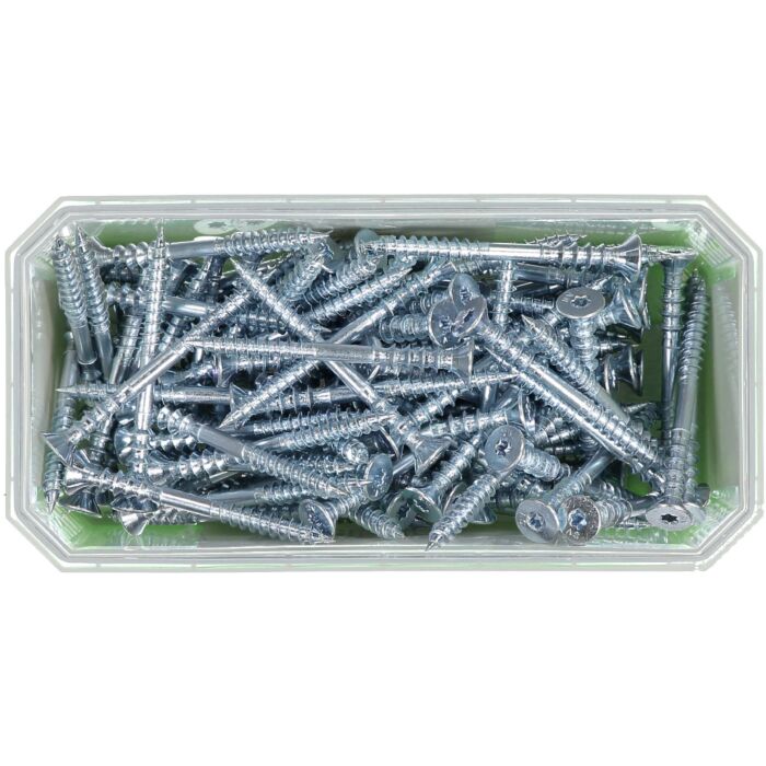 Wykonany z hartowanej stali węglowej zabezpieczony antykorozyjnie warstwą cynku elektrolitycznego. Wkręt jest stosowany w ościeżnicach i ościeżach nawierconych dwustopniowo Ø14/5 mm, stożkowy łeb z gniazdem TX 25. Otwory montażowe można zamaskować zaślepką w odpowiednim kolorze.