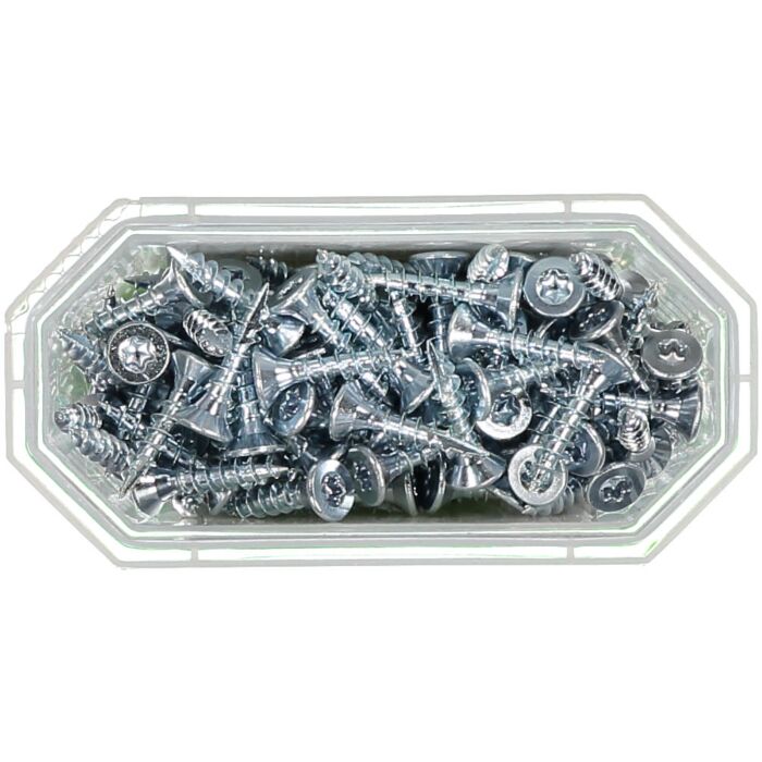 Wkręt jest wyprodukowany ze stali utwardzanej, ocynkowanej elektrolitycznie o klasie antykorozyjności C1. Nacięcie frezujące na gwincie umożliwia zastosowanie niskiego momentu wkręcania w drewnie, i ogranicza pojawianie się pęknięć. Spodnia część łba jest gładka, co oznacza, że wkręt jest idealny do mocowania na przykład zawiasów, bez uszkadzania powierzchni materiału. Wyposażony w gniazdo montażowe TX.