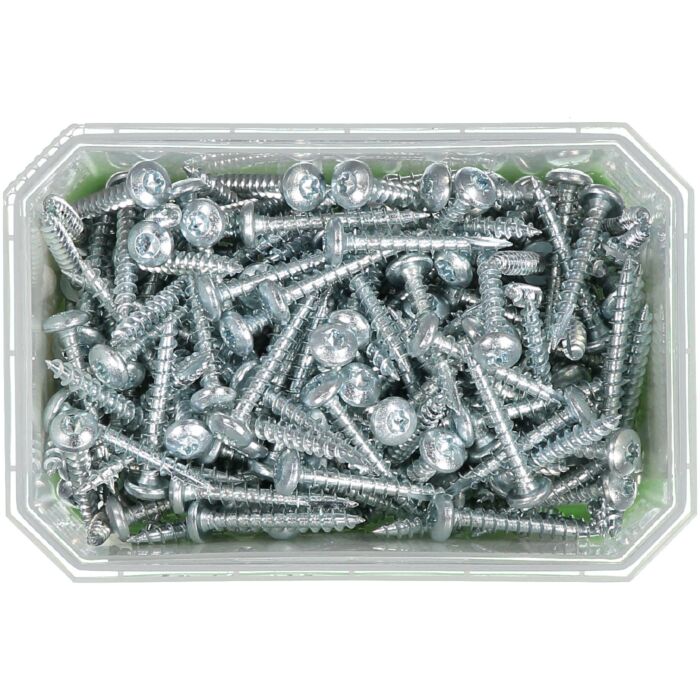 Wkręt wykonany z hartowanej stali stali węglowej, ocynkowanej powierzchniowo elektrolitycznie, klasa korozyjności C1.Posiada jedno nacięcie frezujące umożliwiające zastosowanie niskiego momentu wkręcania w drewnie, i ogranicza pojawianie się pęknięć. Spodnia część łba jest gładka, co oznacza, że wkręt jest idealny do mocowania zawiasów, bez uszkadzania powierzchni materiału. Wyposażony w gniazdo montażowe TX.