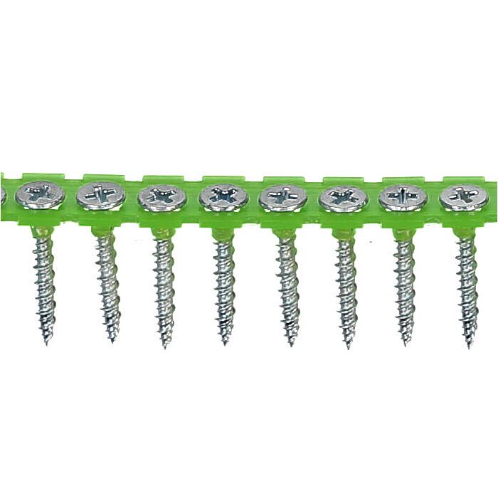 Wkręt na taśmie wyprodukowany ze stali utwardzanej ocynkowanej elektrolitycznie. Posiada gniazdo montażowe Philips Ph2. Wkręt KOMBI na taśmie pasuje do najczęściej spotykanych na rynku wkrętarek do seryjnego osadzania wkrętów.