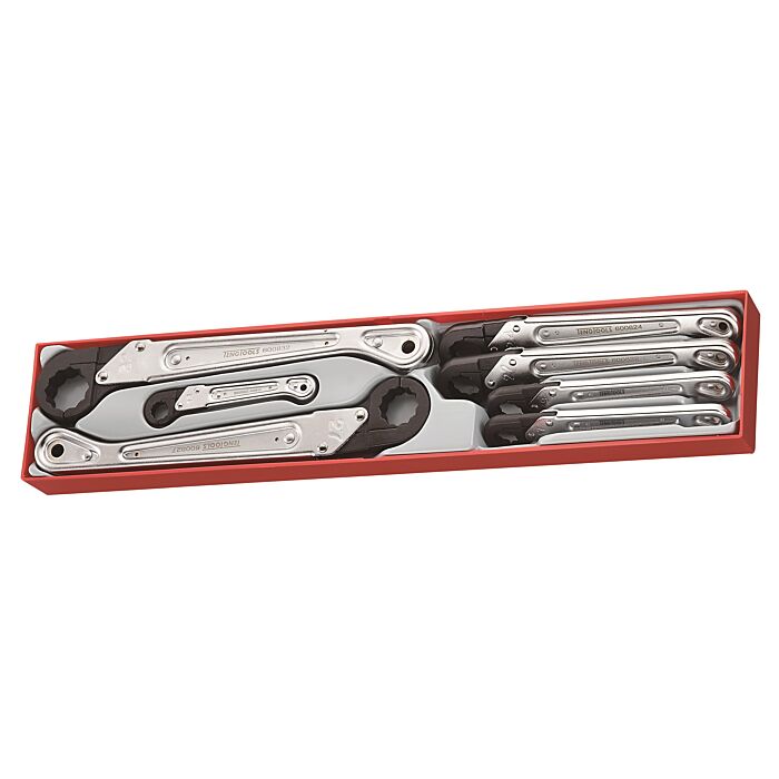 7-elementowy zestaw kluczy oczkowych zapadkowych otwieranych Teng Tools TTxQRS07